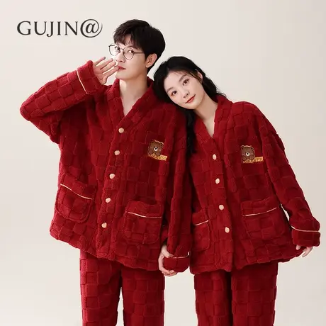 古今@法兰绒情侣睡衣大红色龙年女士加厚新婚结婚本命年家居服男